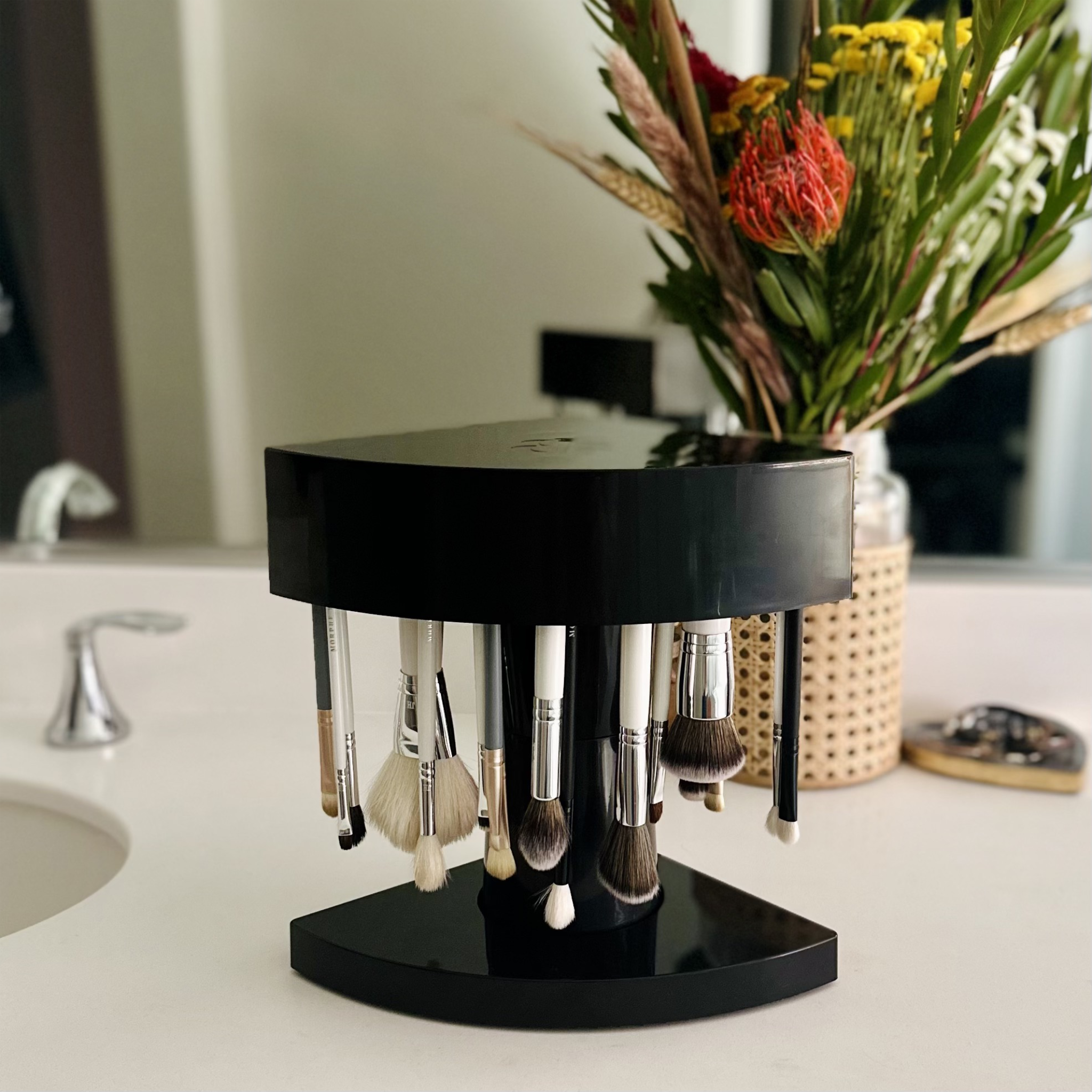 Makeup brushes are an investment and deserve proper care to last. Regular, gentle cleaning is key—but how you dry them matters just as much. Traditional countertop drying leads to slow drying times, flattened bristles, and clutter. Our all-in-one Brush Holder and Drying Stand solves these problems, setting us apart